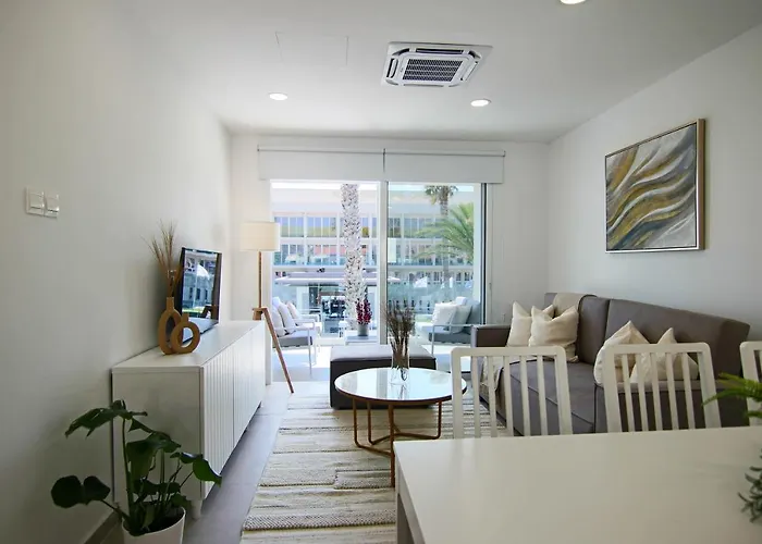 Apartmán Phaedrus Living: Seaview Luxury Flat Limnaria 114 má pokoje pro hosty zařízené balkónem, osobním sejfem a místností na posezení, a poskytuje ideální ubytování ve městě Paphos.
